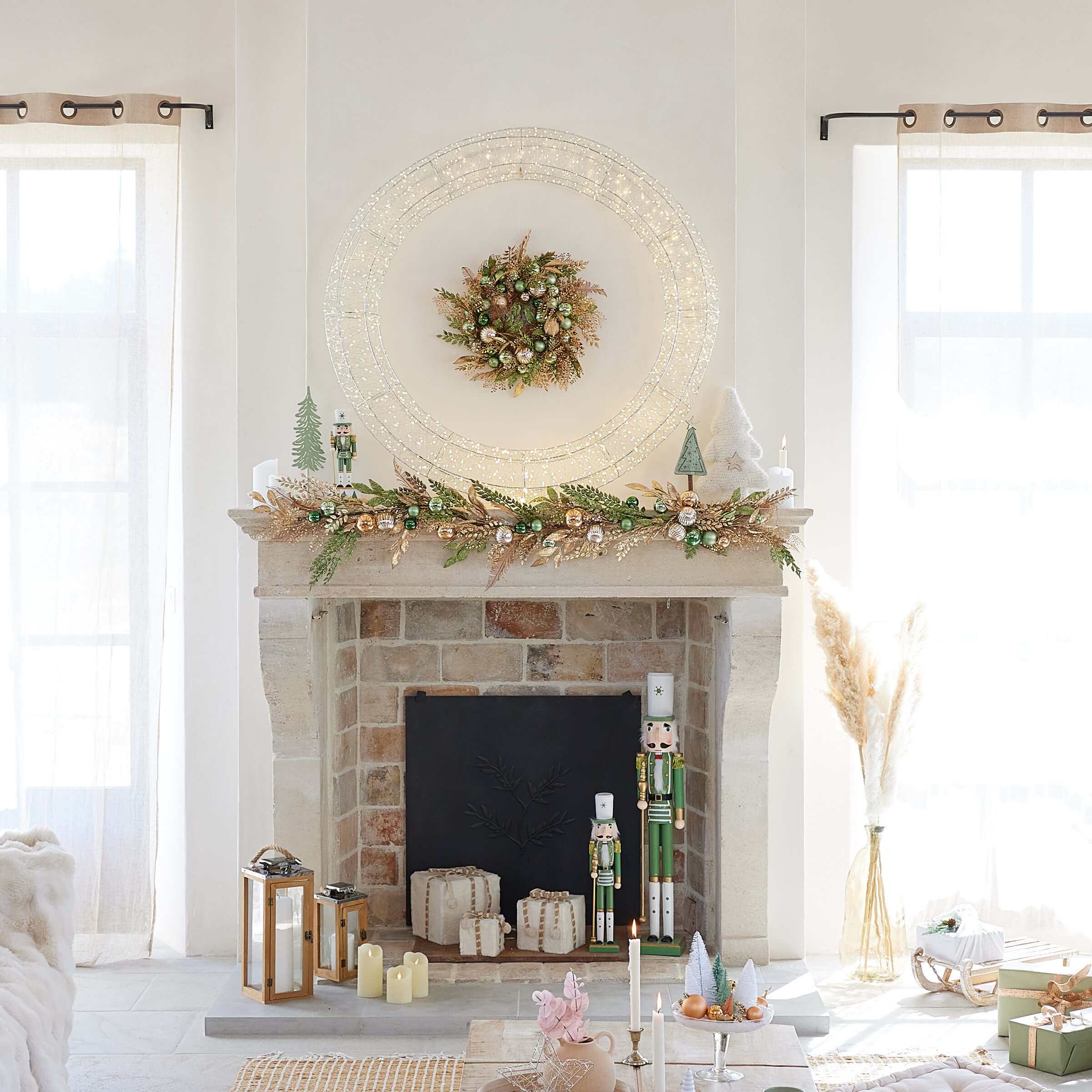 Esta magnífica Corona de Navidad Gigante iluminará tu exterior con sus 1800 micro LED. Su brillo plata y blanco cálido aportará un toque festivo y acogedor a tu decoración navideña. Su gran diámetro de 116 cm la hace visible desde lejos, añadiendo un toque de magia a tu casa durante la temporada festiva.