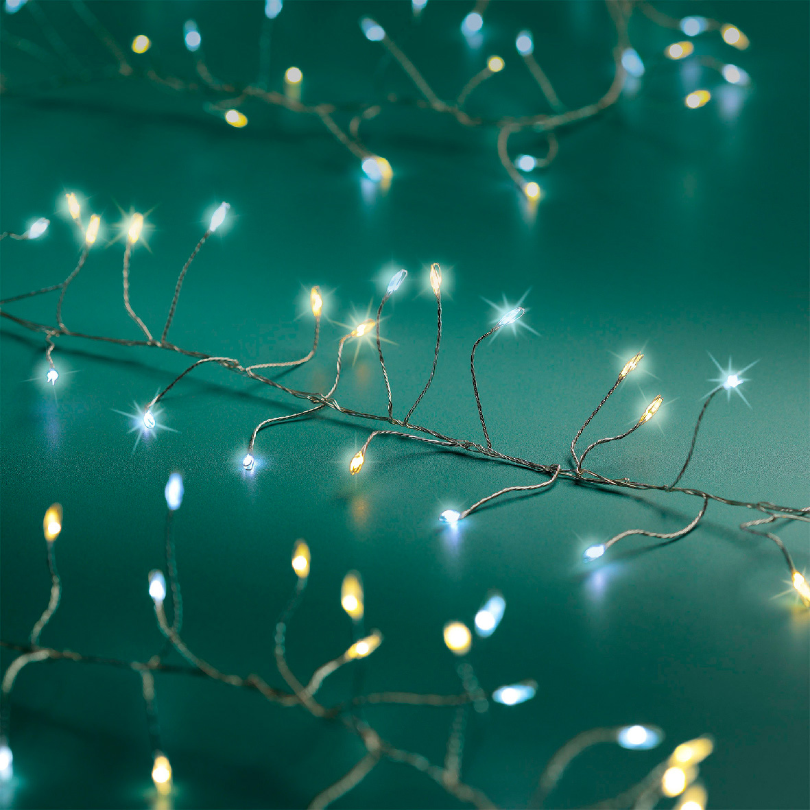 Ilumina tu casa con nuestra guirnalda luminosa Lujo bicolor. Con sus 960 Micro LED, aportará un ambiente cálido y festivo a tu interior o exterior. Su cable de plata se fundirá discretamente en tu decoración, dejando todo el protagonismo a la belleza de las luces blanco cálido y blanco frío.