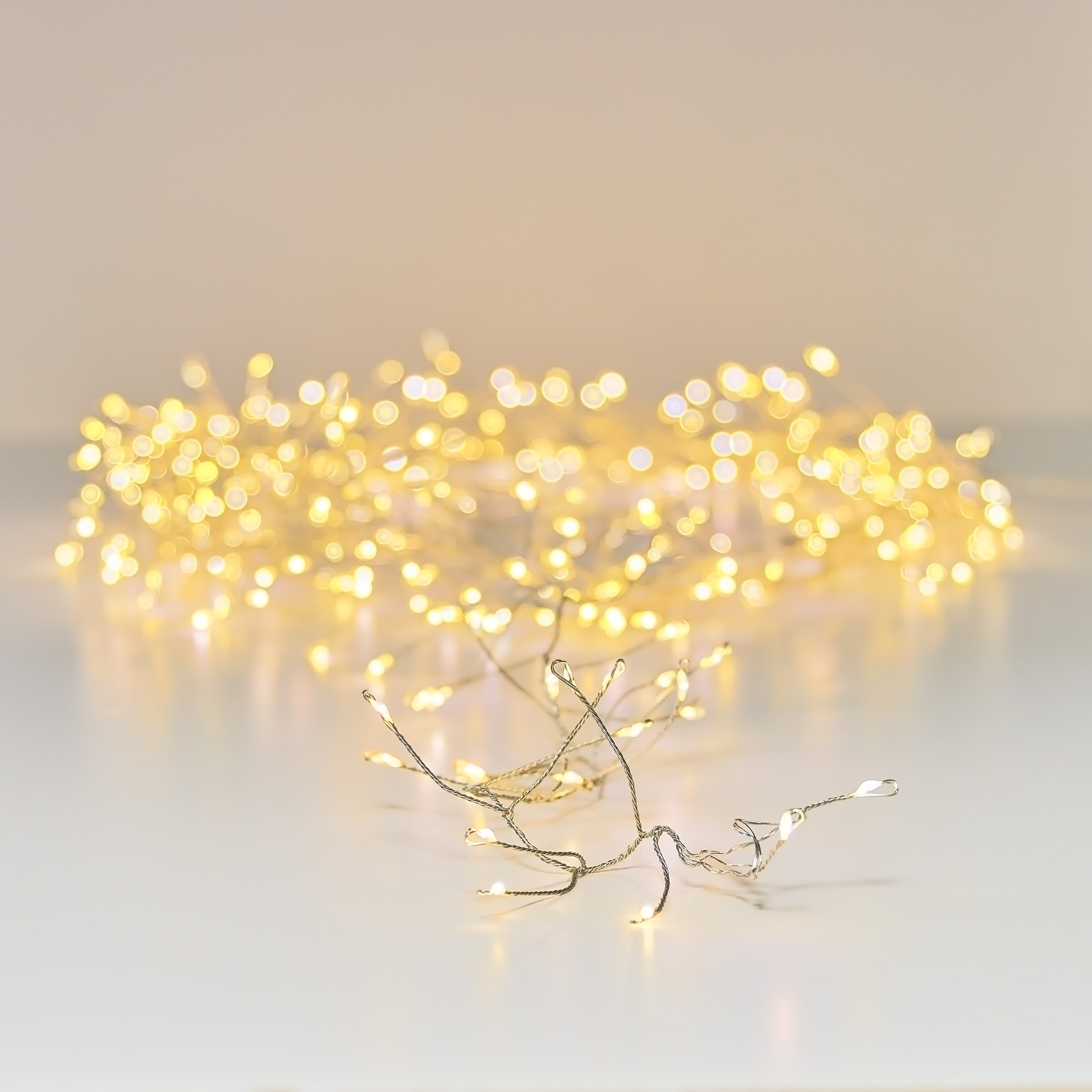 Sublime tu decoración navideña con esta guirnalda luminosa Lujo de 18 metros, compuesta por 1440 micro LED. Su cable de plata y sus luces de color blanco cálido aportarán un ambiente cálido y festivo a tu exterior. Con sus 8 funciones de iluminación, incluyendo un efecto parpadeante, es ideal para iluminar tu jardín, balcón o fachada con elegancia y originalidad.