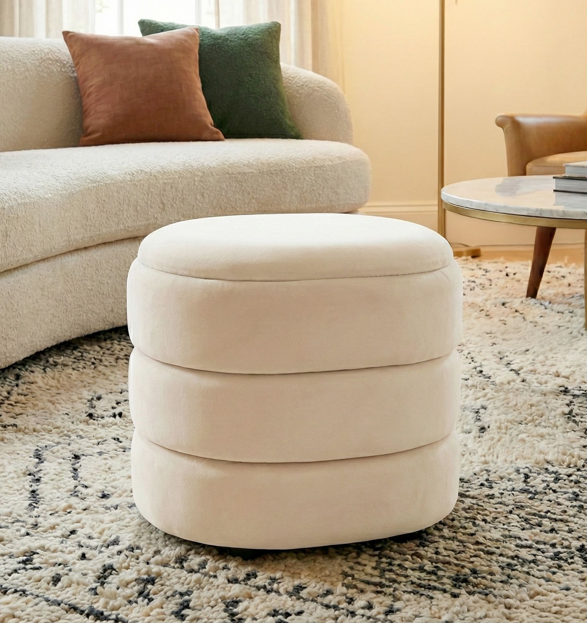 Este puf Kilène combina funcionalidad y estética con su diseño depurado y su confort mullido. Perfecto para añadir un asiento adicional, también puede servir como cofre de almacenamiento.