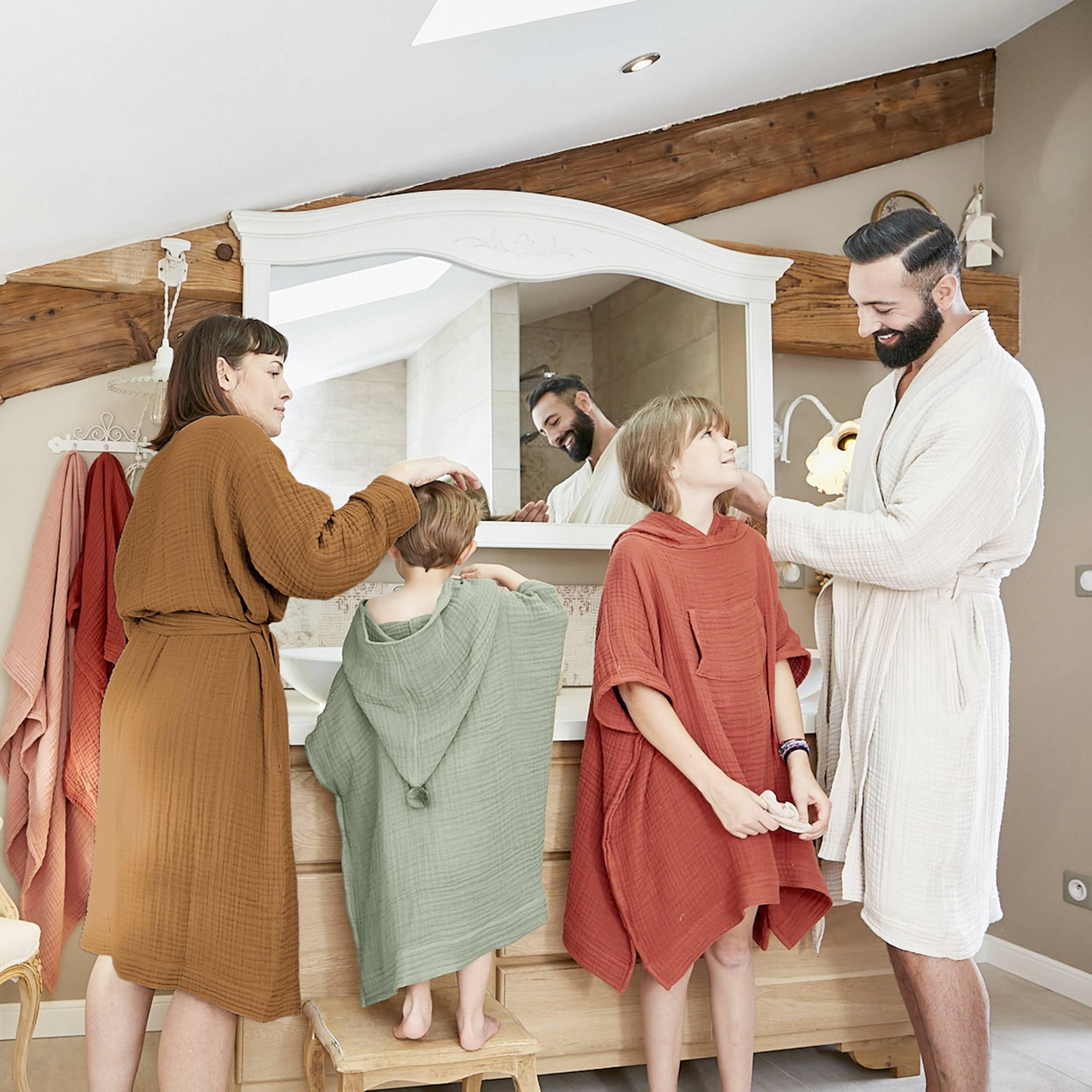 Envuélvete en suavidad con este hermoso albornoz de gasa de algodón de la colección Gaïa. Ideal para levantarse de la cama o salir de la ducha, te encantará envolverte en este tejido tan cómodo que evoca la ternura de la infancia. La gasa de algodón, fluida y agradable al tacto, será tu nuevo aliado para relajarte en casa. Tejido en 4 capas, este albornoz absorbente también es perfecto para secarte rápidamente y con estilo.