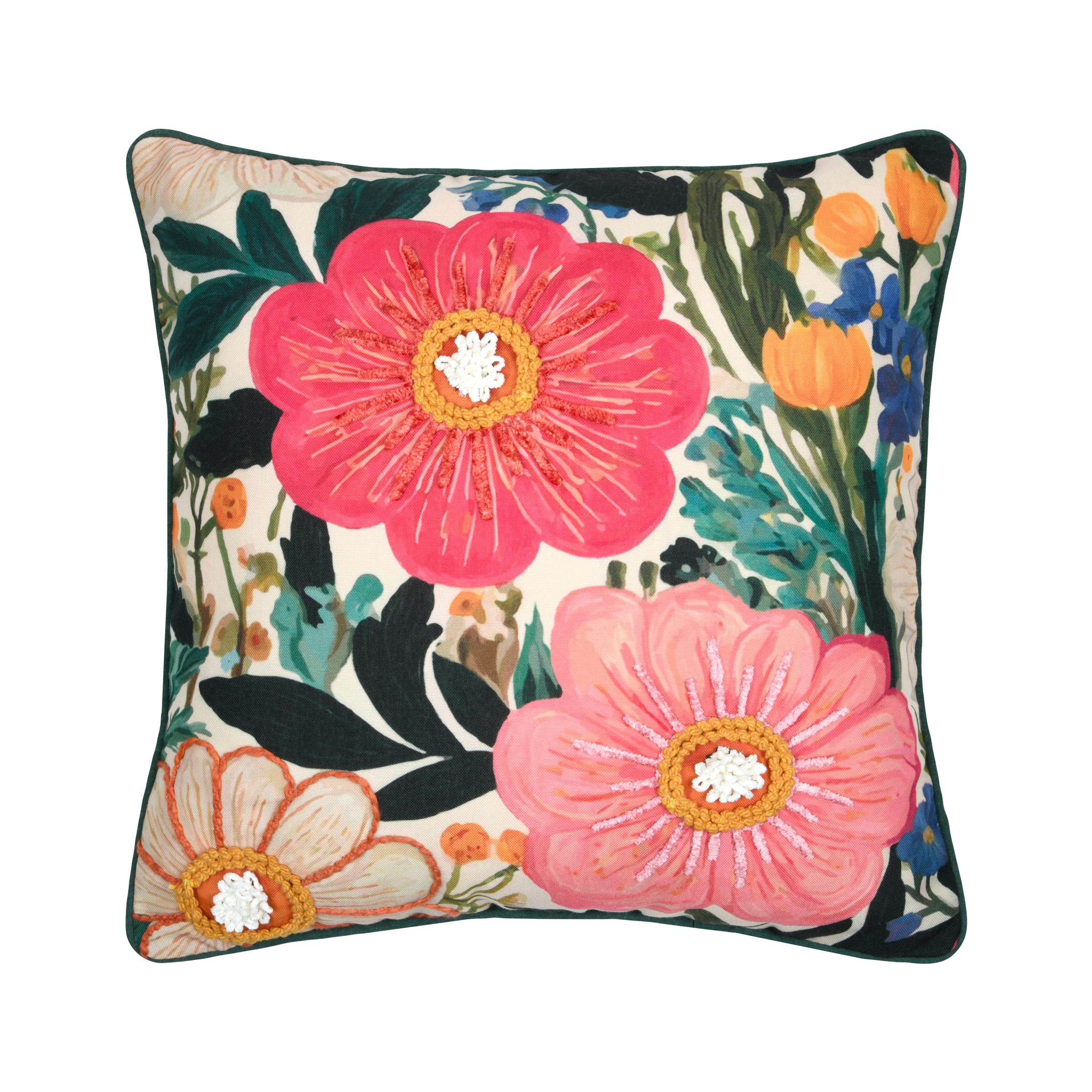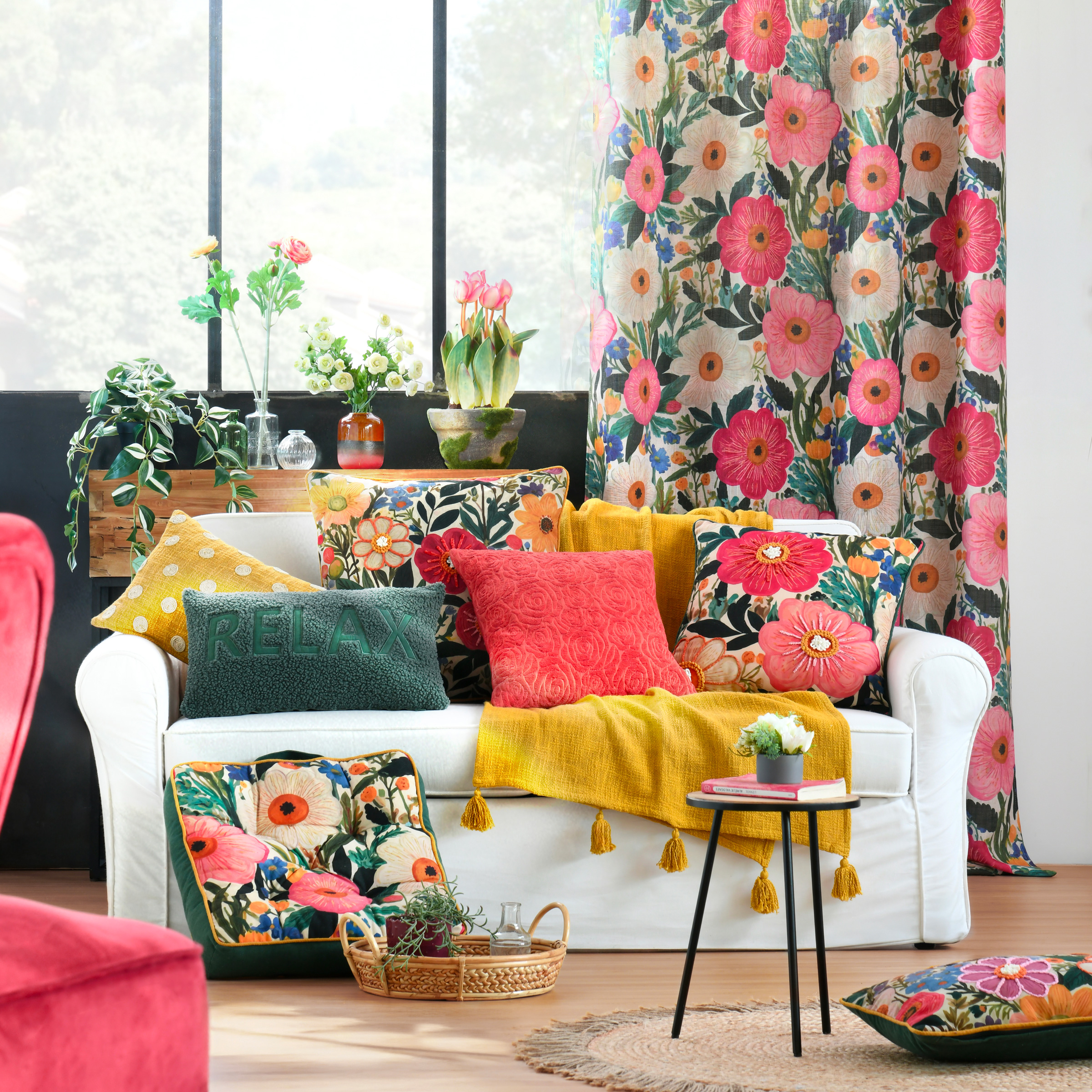 El cojín Betty, con su audaz y vibrante diseño floral, aporta un toque de energía a tu espacio. Su estilo vegetal y su acabado desenfundable con ribete añaden un toque de sofisticación a tu decoración interior.