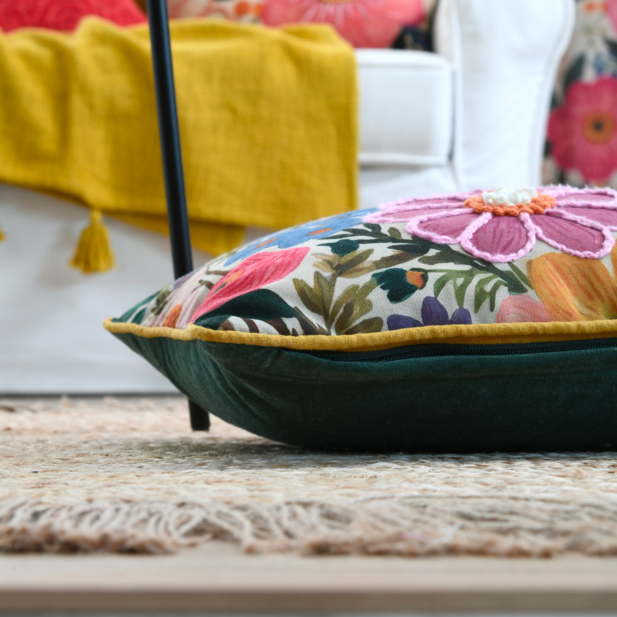 El cojín Betty aporta un toque de dinamismo a tu interior gracias a su luminoso y expresivo estampado floral. Su reverso liso ofrece una alternativa más sobria para variar los estilos.