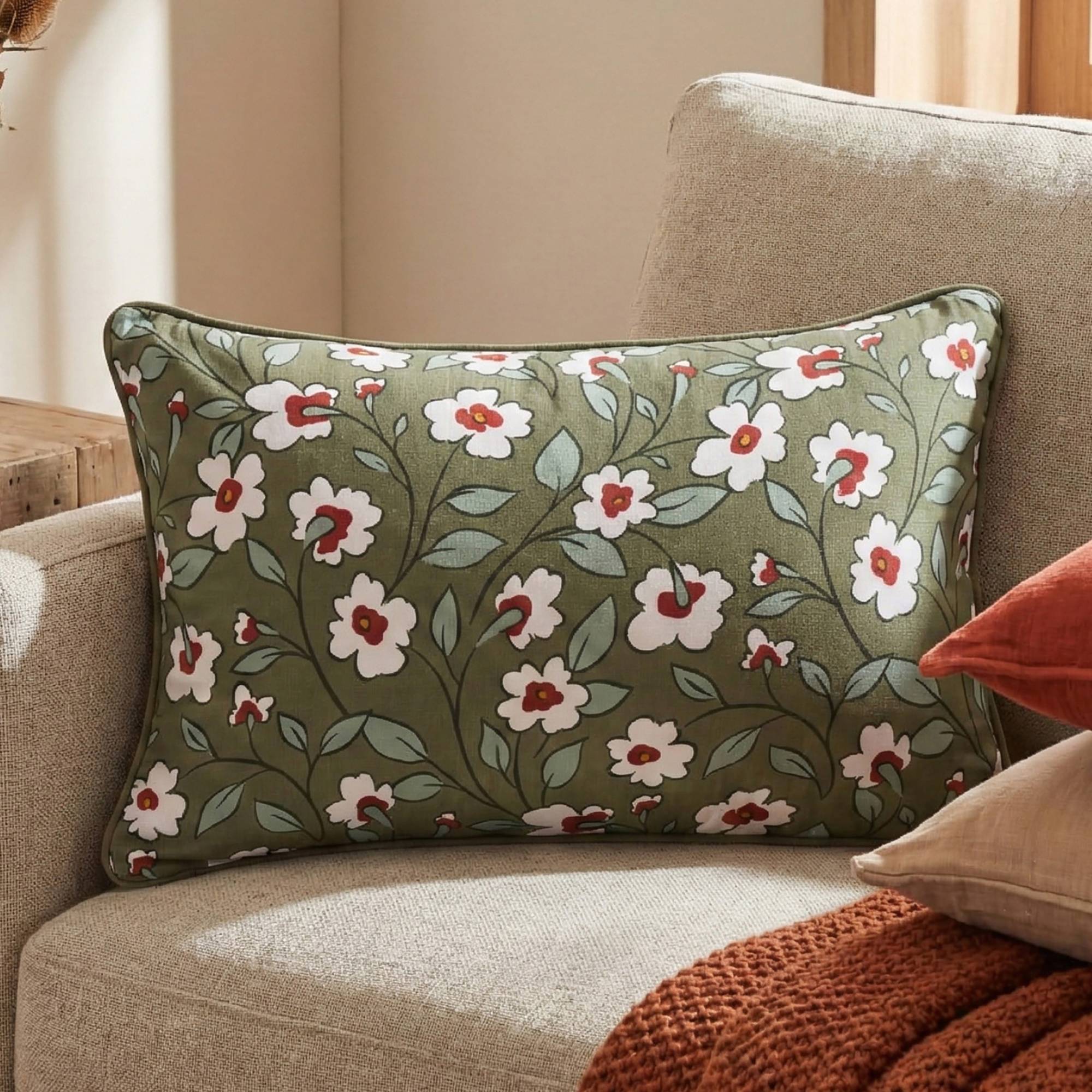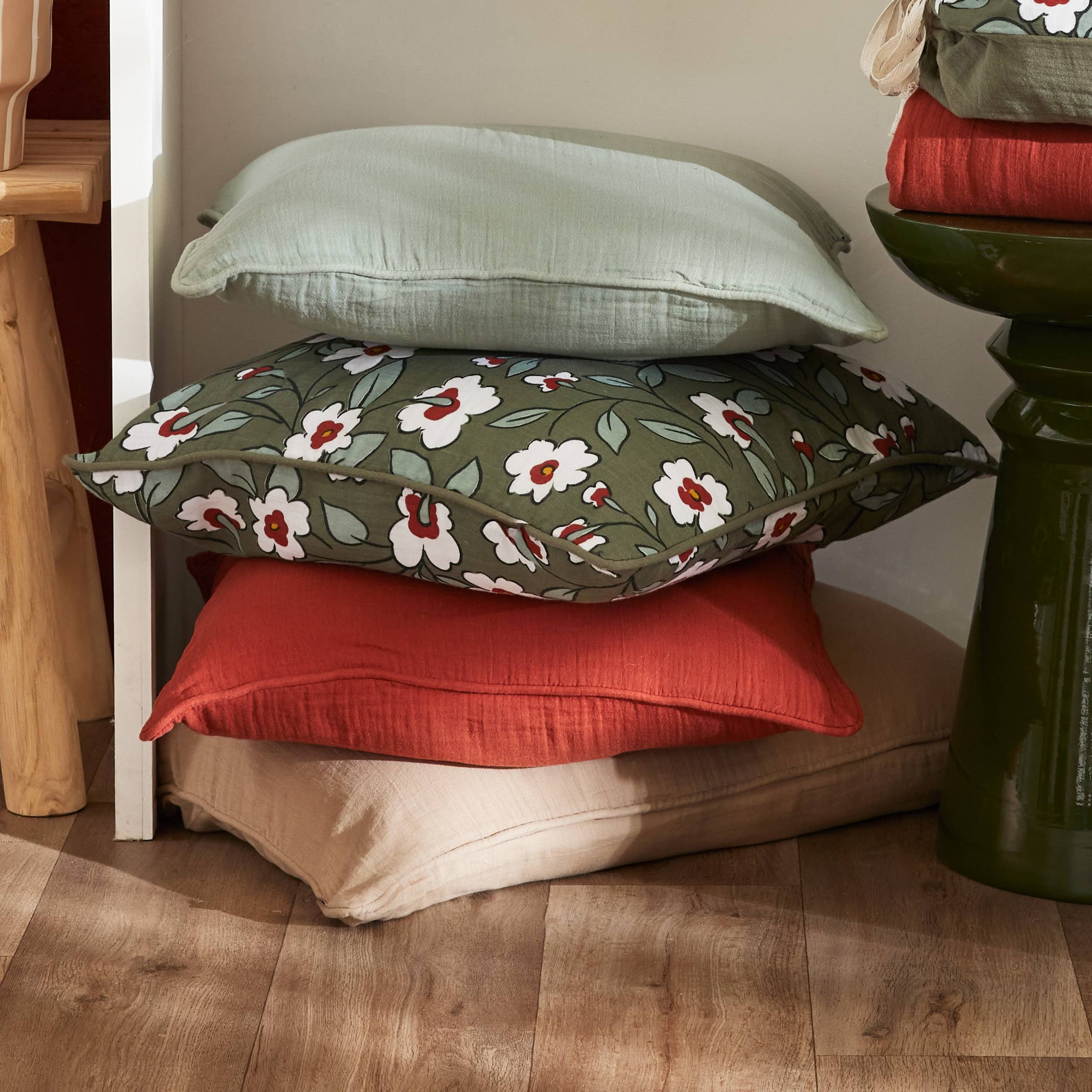 Cojín rectangular de gasa de algodón (40 x 60 cm) Gaïa margarita Verde romero