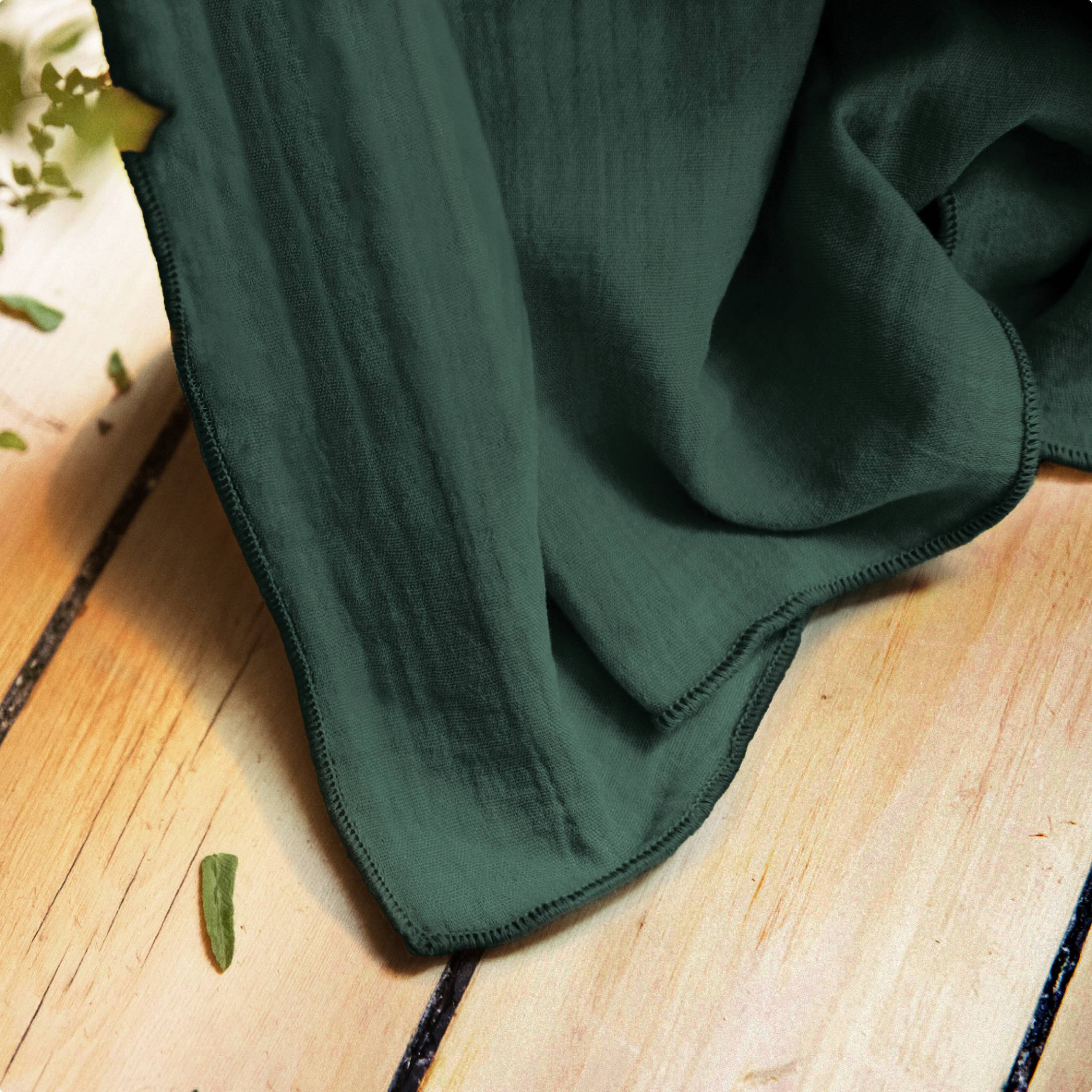 El lino de gasa de algodón es naturalmente arrugado, por lo que no necesita planchado. Para preservar el aspecto único de la gasa de algodón, recomendamos un lavado con centrifugado moderado.