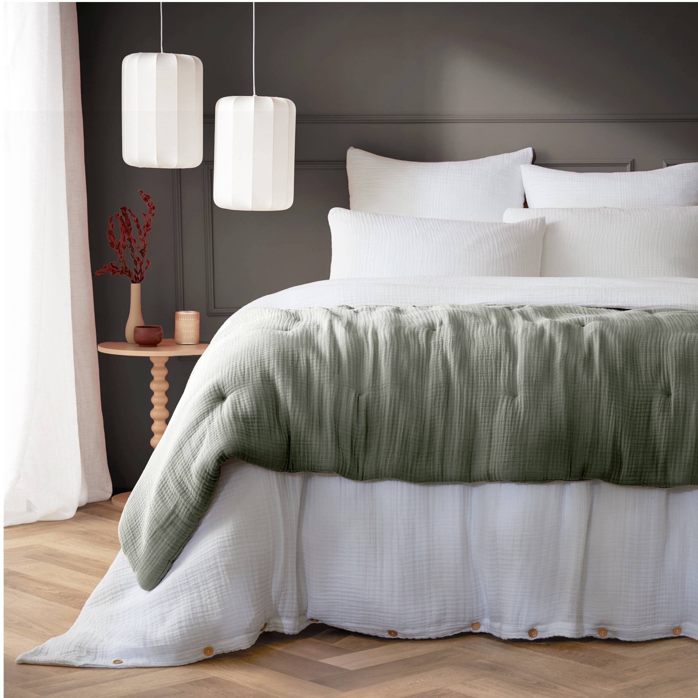 Este edredón Victoria x Gaïa de gasa de algodón ofrece un confort excepcional y una suavidad única. Su tejido gofrado y su encanto rudo y auténtico lo convierten en ropa de cama fácil de vivir y de mantener.