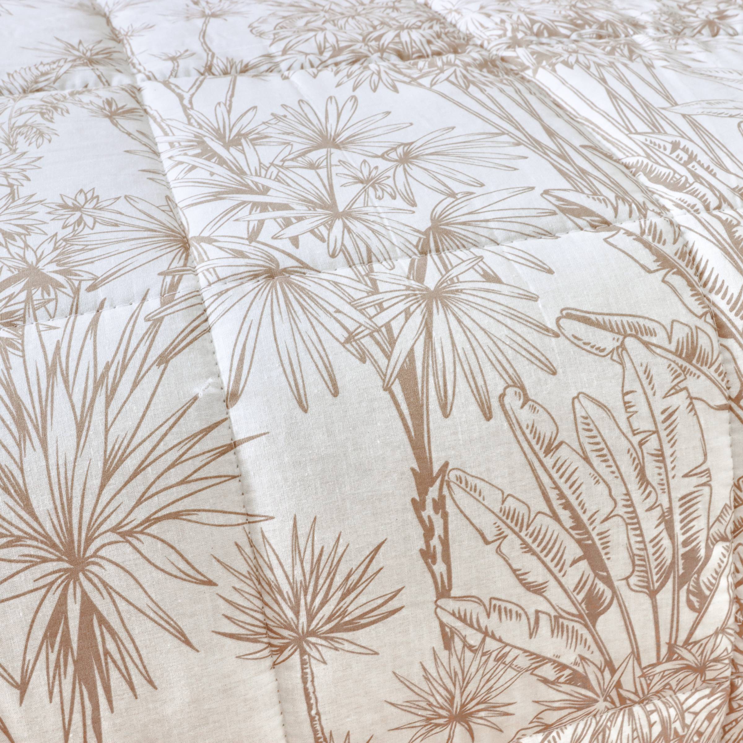 Esta edredón estampado y su funda de almohada de la gama Lara te envolverán en suavidad y calor. Su motivo floral aporta un toque vegetal a tu habitación, mientras que su color marrón crea un ambiente acogedor y relajante.