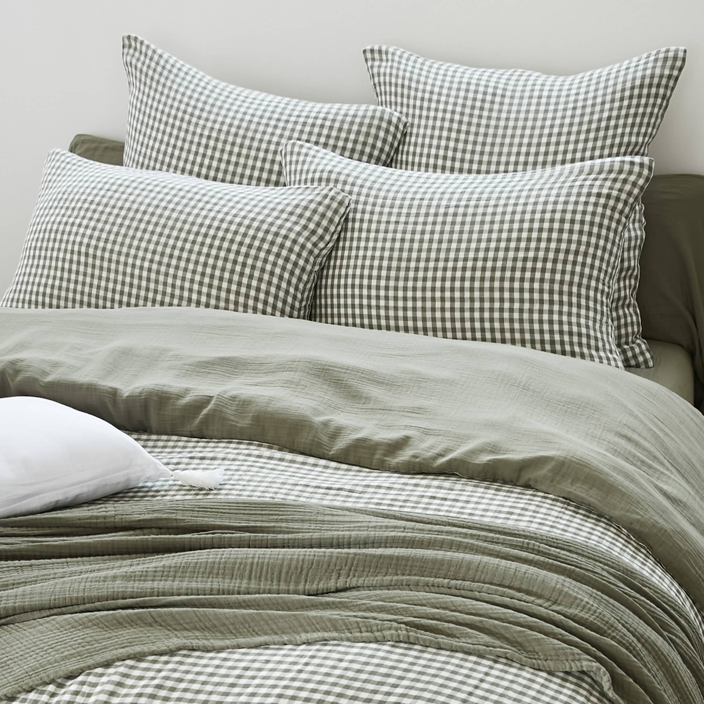 Impreso: funda de edredón con diseño de cuadros vichy en el frente y liso en la parte posterior.