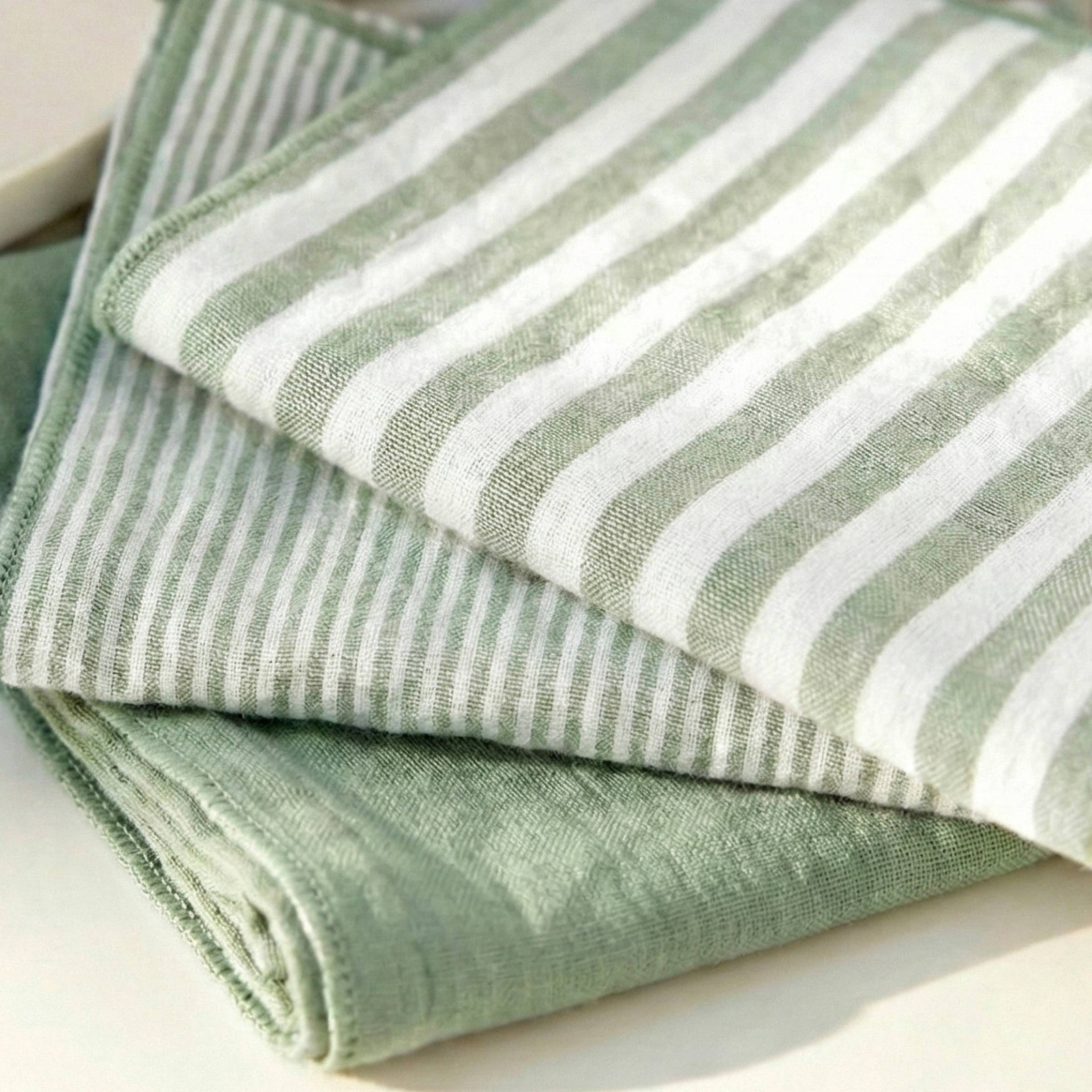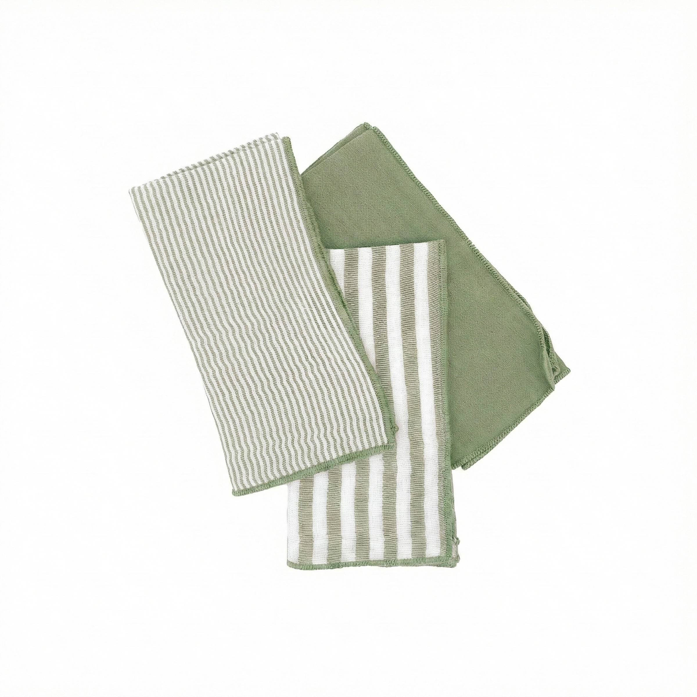Estampado: 1 servilleta de rayas finas, 1 servilleta de rayas medianas y 1 servilleta lisa.