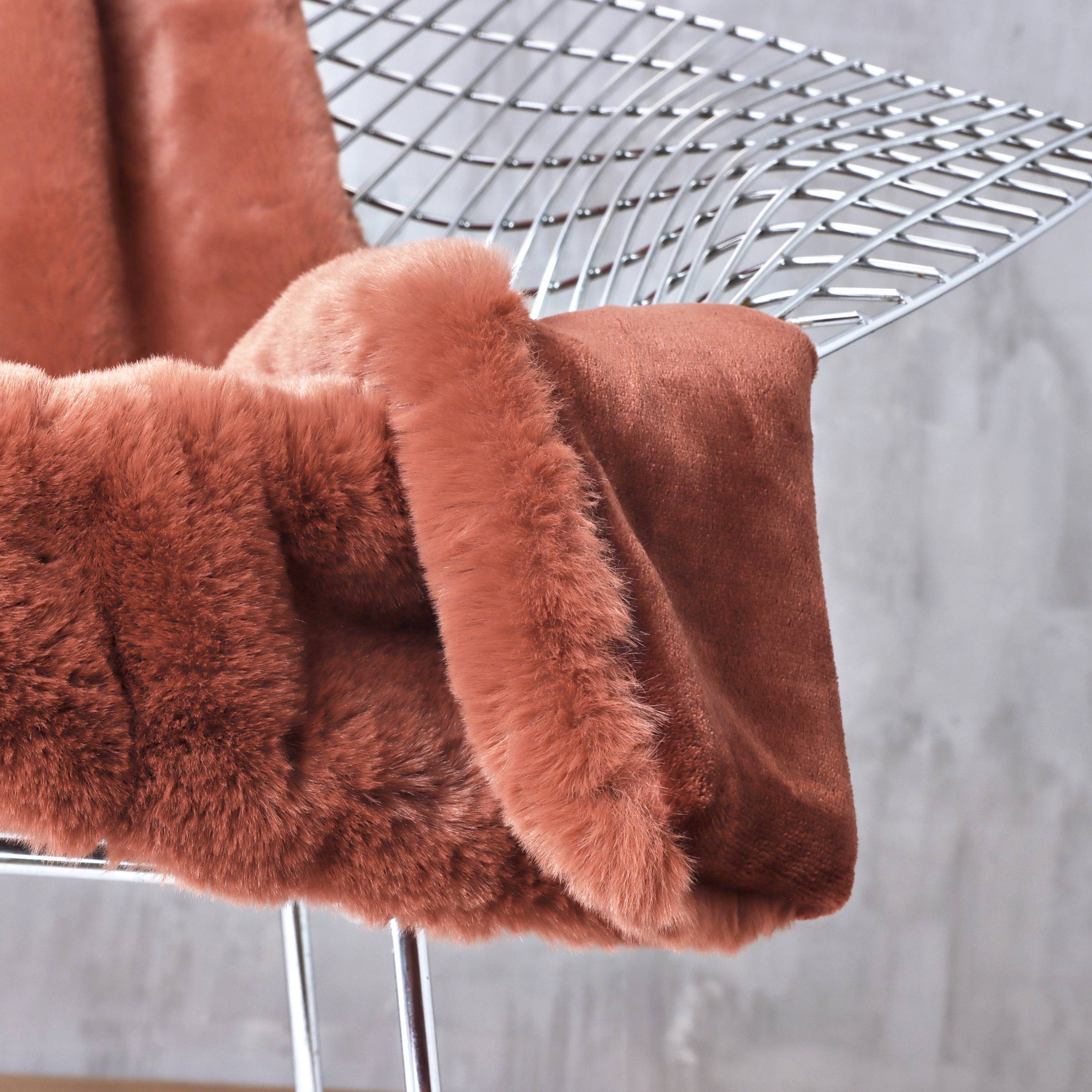 La manta Finn Terracota, de piel sintética, es ideal para envolverte en suavidad durante las noches frescas. Su color terracota aportará un toque cálido a tu interior.