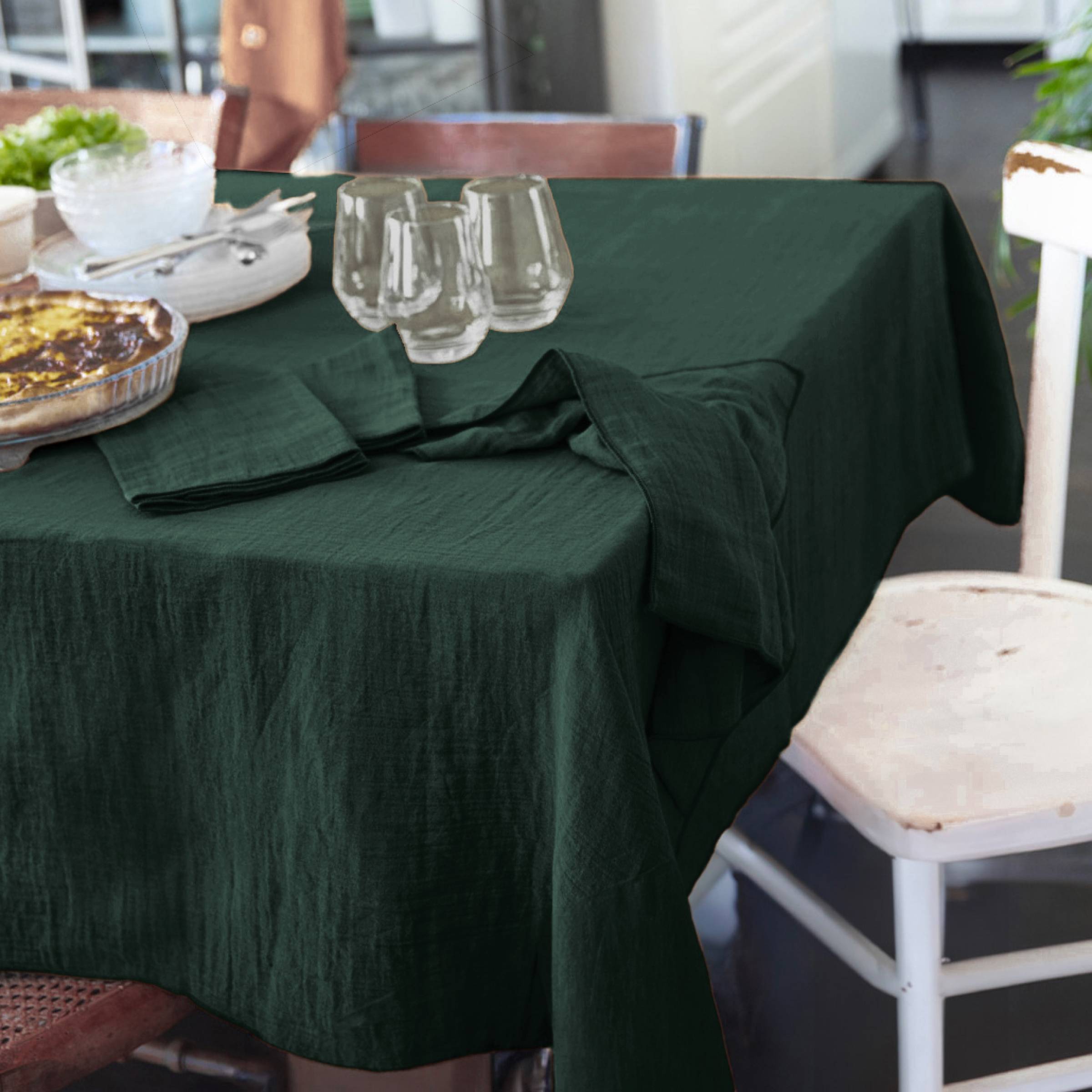 Este mantel rectangular Gaïa de gasa de algodón aporta un toque de naturaleza a tu mesa con su color verde pino. Es ideal para crear un ambiente cálido y acogedor durante tus comidas.
