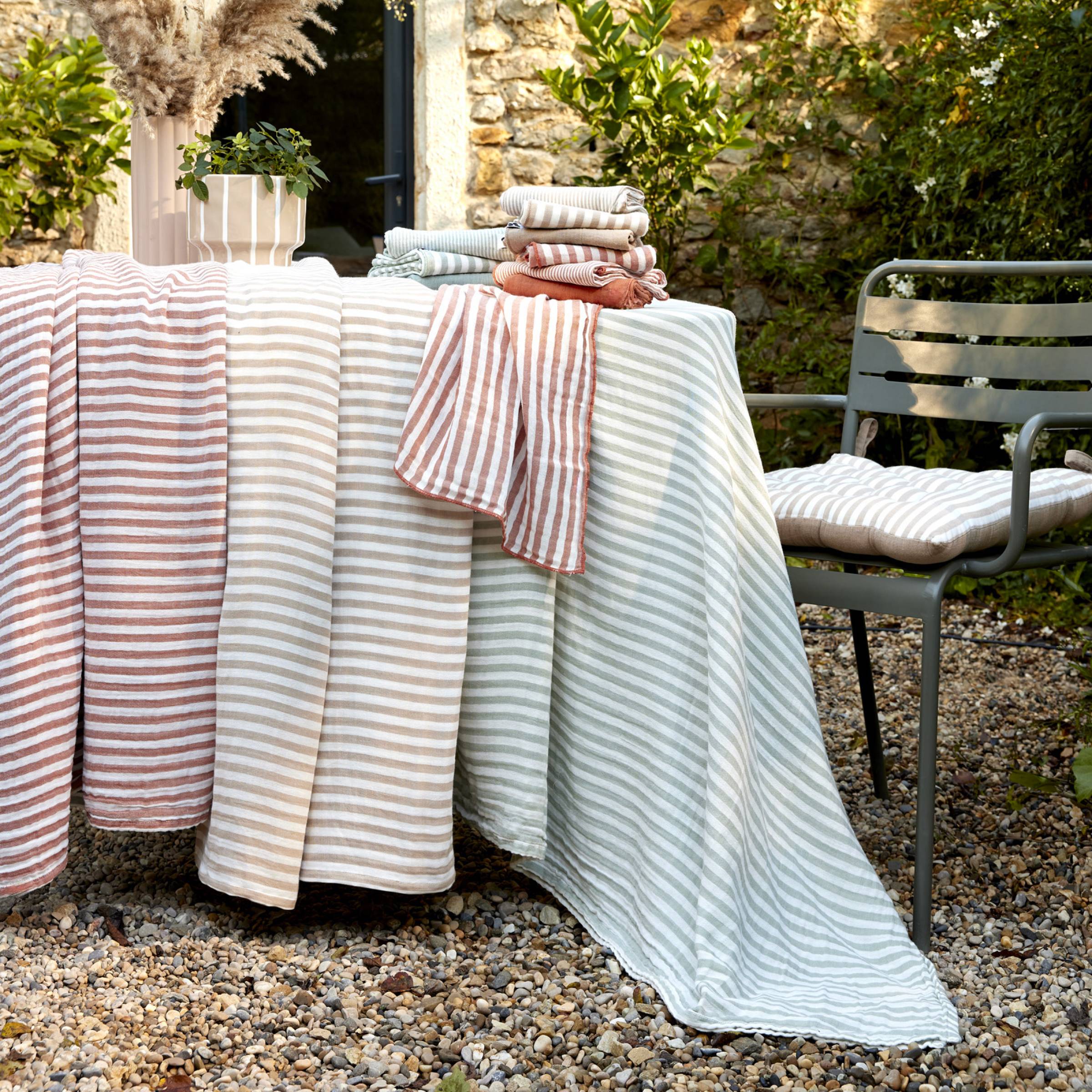 Este mantel de gasa de algodón aportará encanto y suavidad a la mesa. Combínalo con la ropa de cama de la colección Gaïa para crear armonía en la decoración.